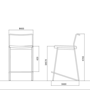 【サイズ】幅400mm 奥行480mm 高さ765mm 座面高さ570mm