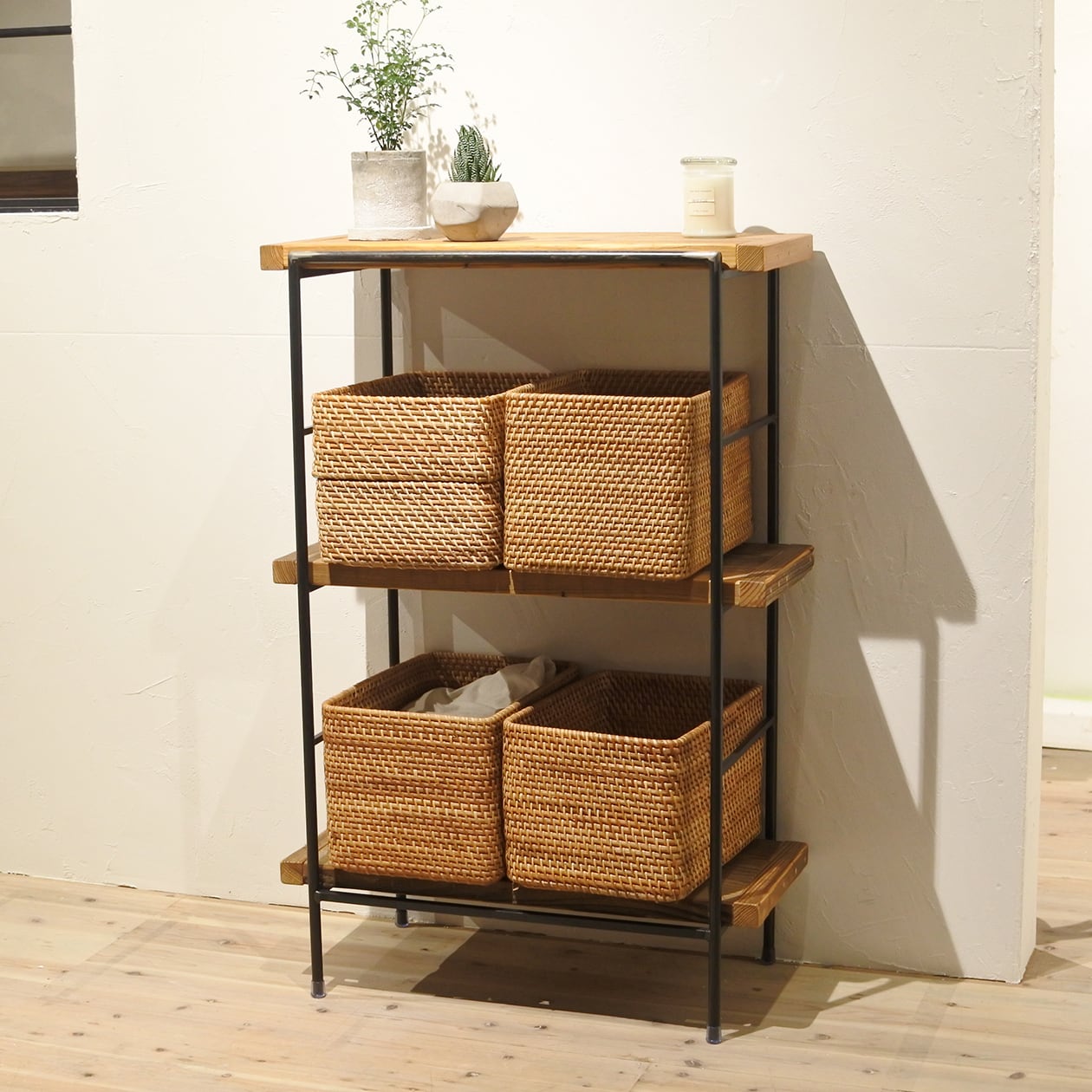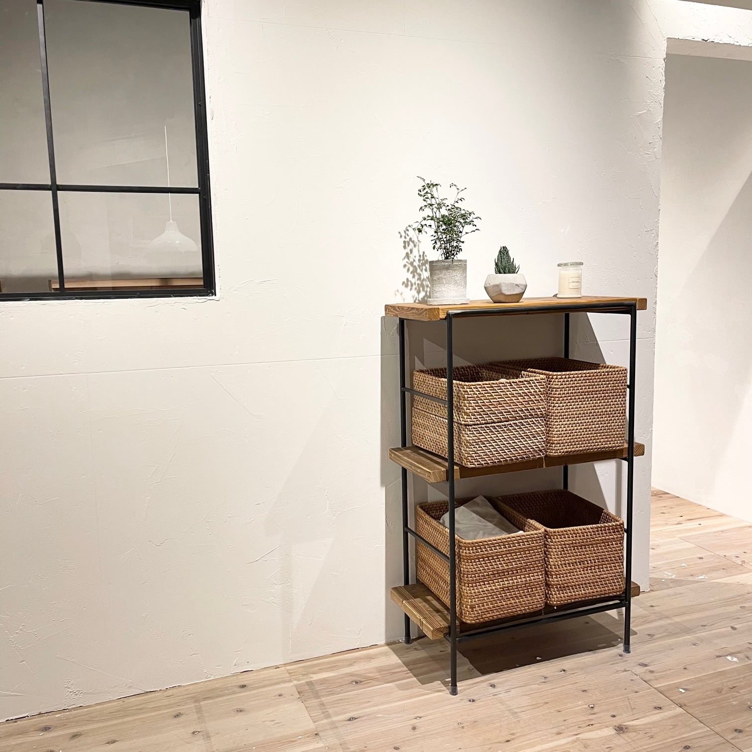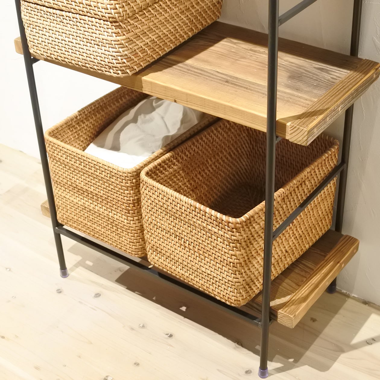 無印良品さんのカゴや収納BOXがぴったり入るサイズです。
