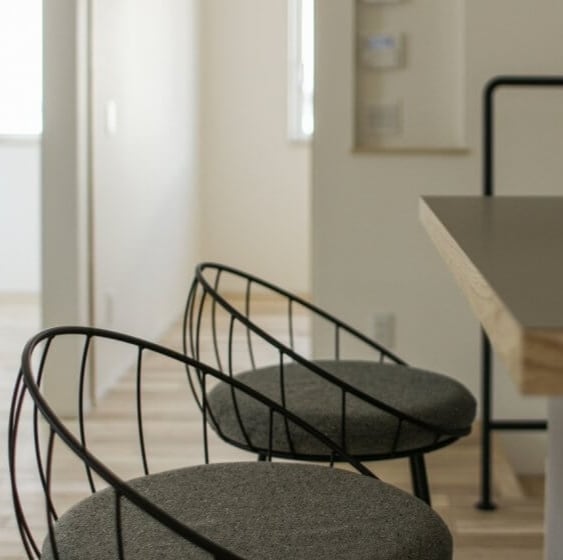 例えば高さが850mmのカウンターなら、チェアの高さは550mm~600mmくらいが目安です。