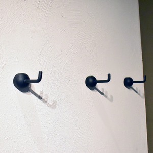 取付ビスが見えないように工夫された、壁に取り付けるフック。