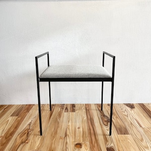 仕上げは鉄の素地のいろを残したクリア塗装です。叩いた跡や削って仕上げた跡、素材そのものの色の違いなど1点ずつ表情が異なるのが魅力です。スツールはアーム部分に意匠的にタタキを加えて、職人の手仕事が感じられる仕上がりになっています。