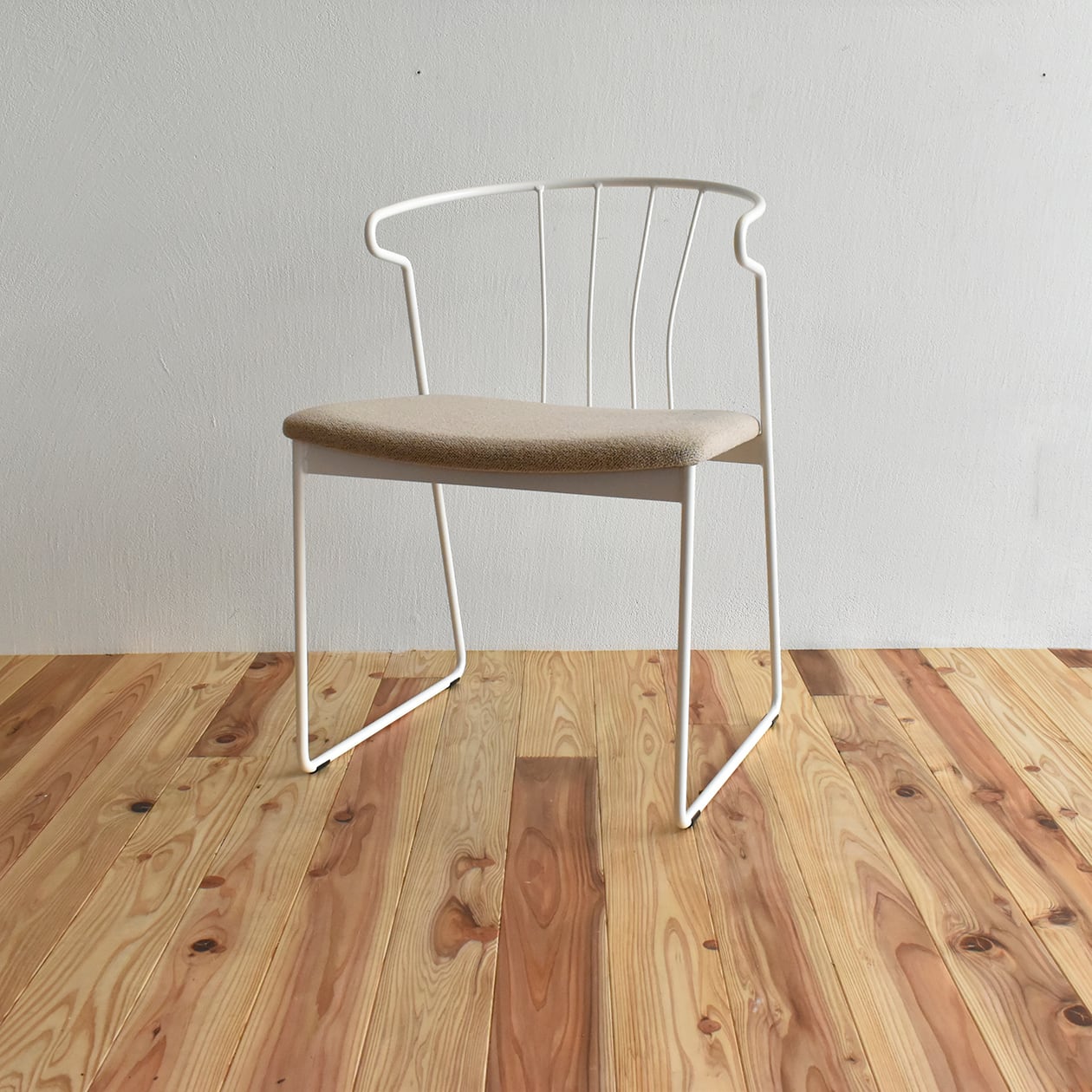 1本の丸い鉄を曲げる、つなぐ、塗る。それぞれの技術の良いところを最大限に引き出し、細身で軽く、座り心地が良いデザインです。鉄の椅子ならではの新しい佇まいに挑戦し、住宅でも、店舗でも、公共空間でもそれぞれの風景を作り上げてくれます。