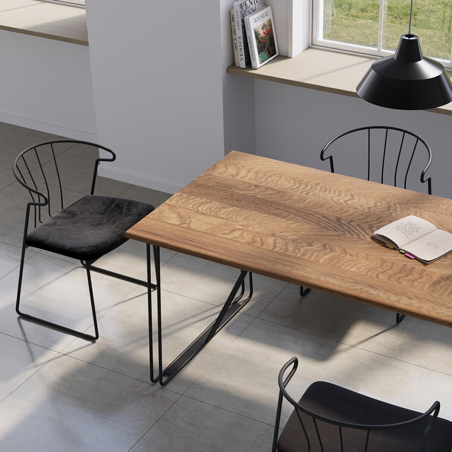 ダイニングチェアとしてはもちろん、書斎やリビングルームなどでも活用できるfeliceチェア。その洗練されたデザインは、どのようなインテリアスタイルにもマッチします。