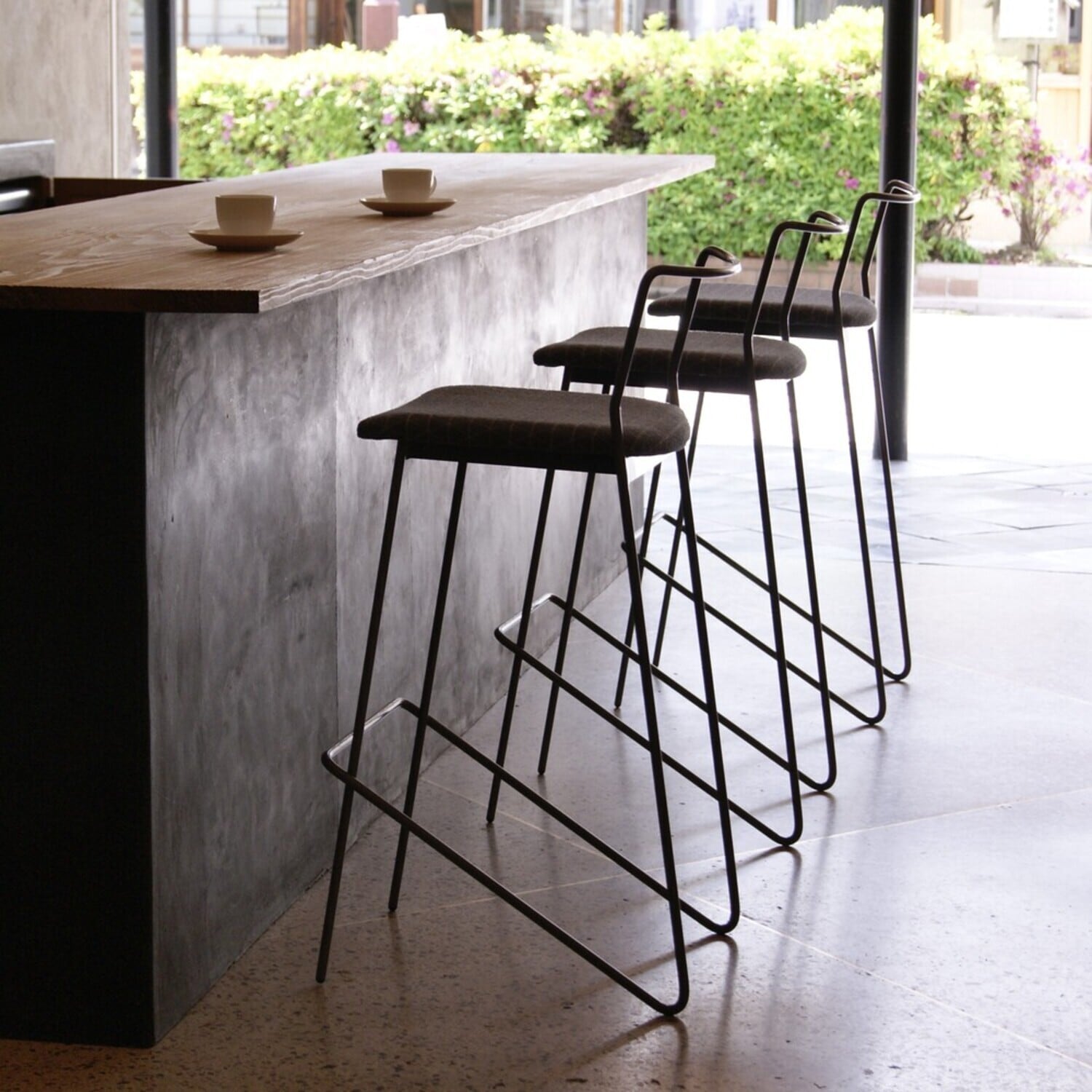 淹れたてのコーヒーを手に腰掛ければ、一筆書きのような美しいラインが、