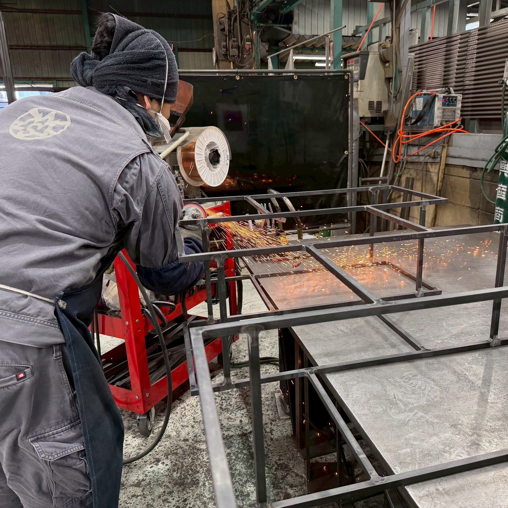 フレーム一部には、デザインのアクセントとして鉄を熱して叩いた跡が残されています。サンダーで削って仕上げた跡などもそのまま活かす仕上げになっています。