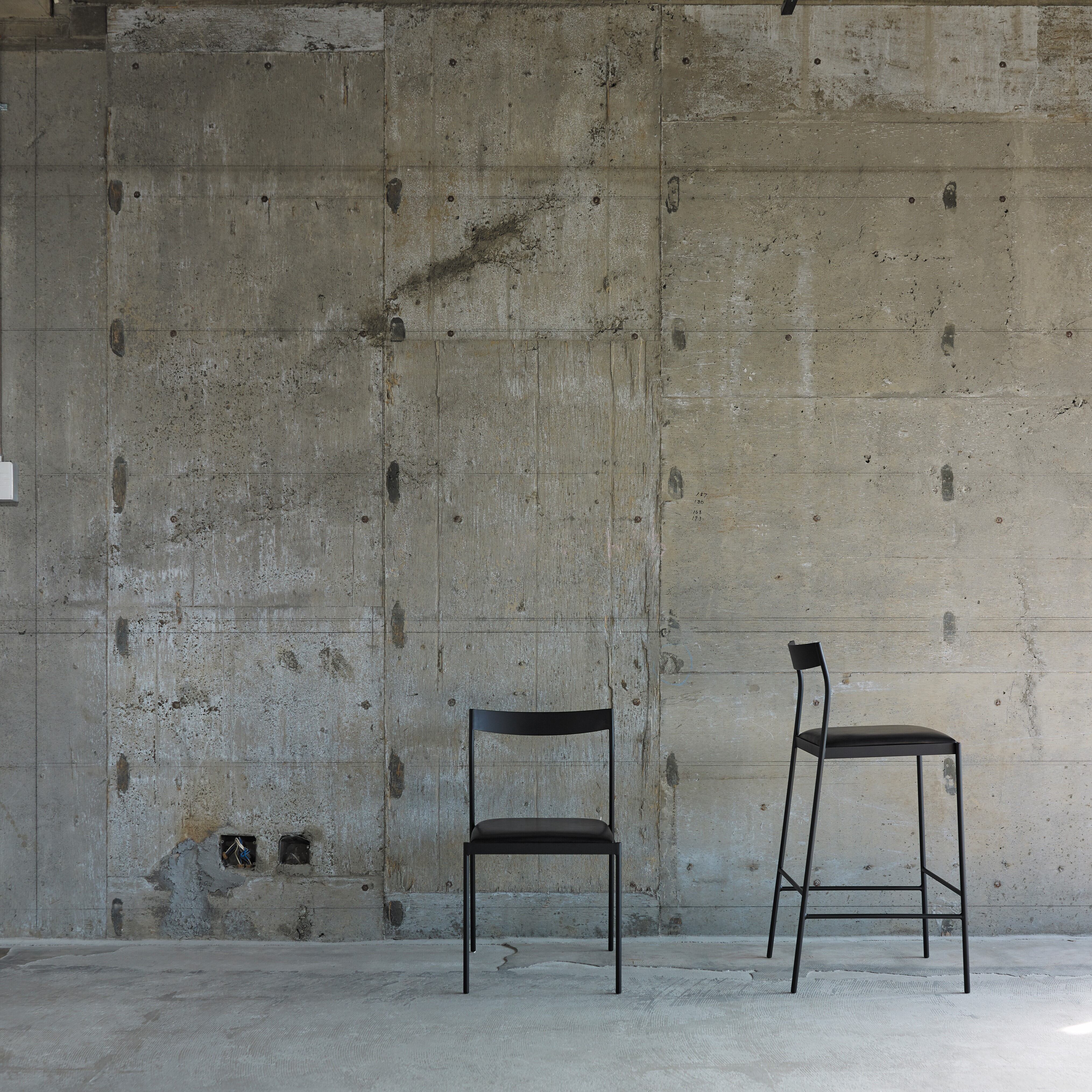 人数の増減に対応できるようにスタッキングが可能で、適度な座り心地も得られるように設計しています。違う部材が重なりあう背と後脚の部分は職人の技で鉄を磨き、シームレスに美しくつながるディティールになっています。