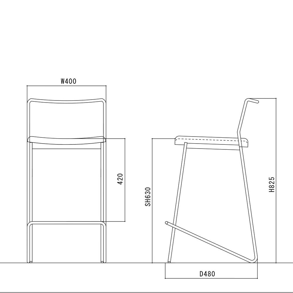 【サイズ】幅400mm 奥行480mm 高さ825mm 座面高さ630mm