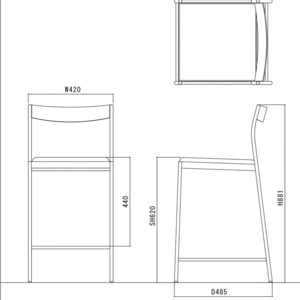【サイズ】幅420mm 奥行485mm 高さ881mm 座面高さ620mm