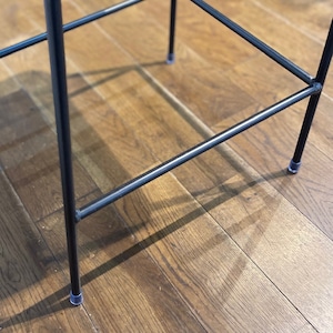無垢鉄の丸鋼と平鋼を使った、懐かしさを感じる雰囲気の小さな椅子。