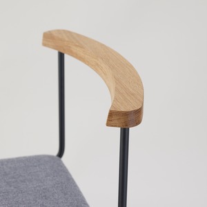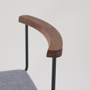 背もたれには無垢材から削り出したパーツをあしらって、柔らかな印象に仕立てました。